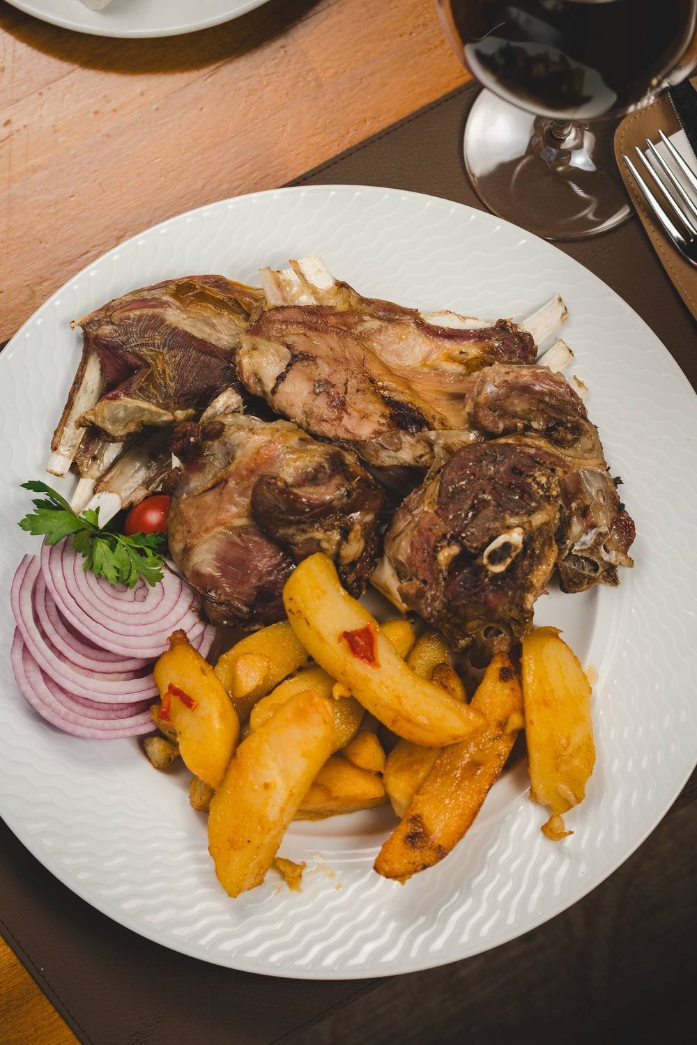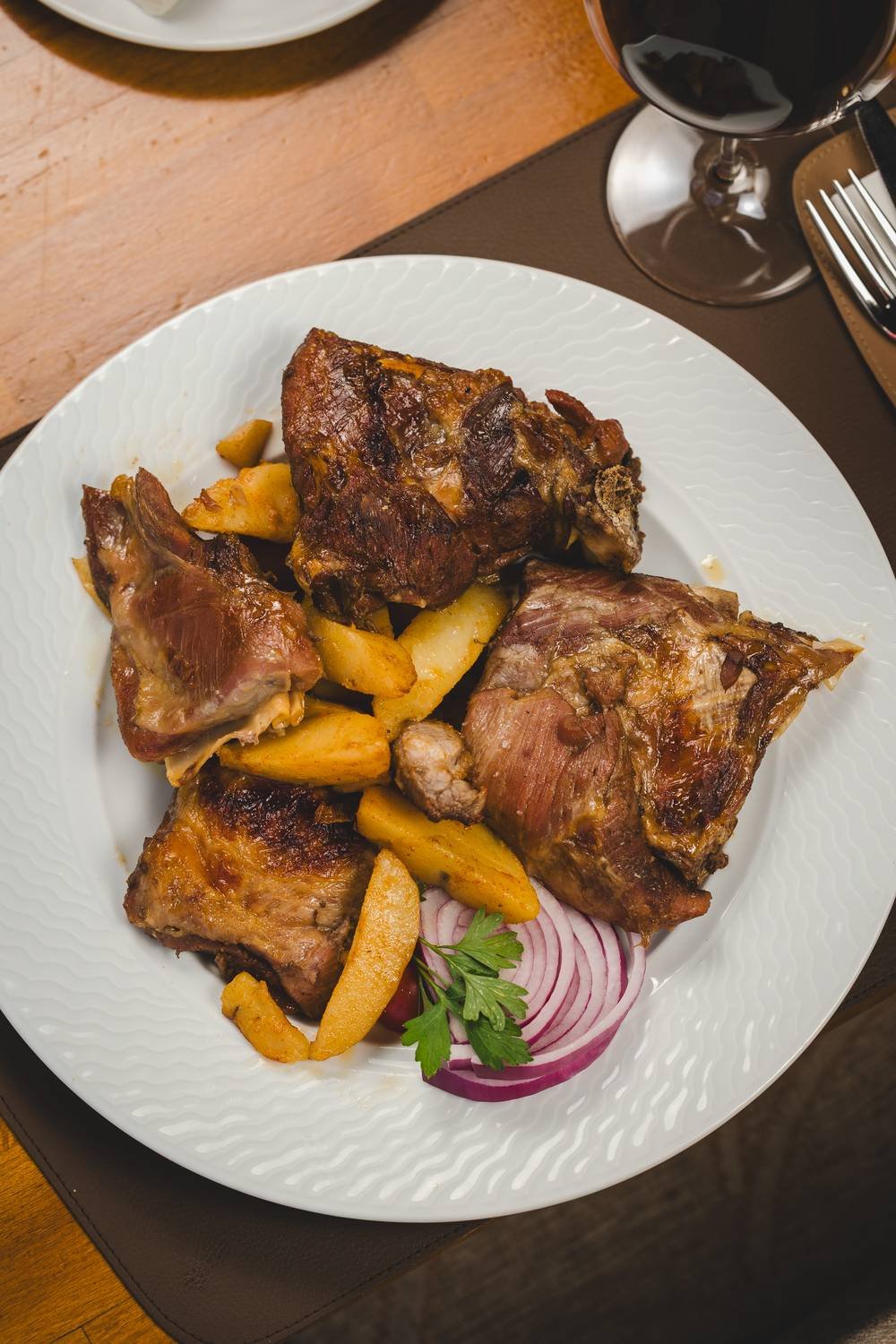 (teletina ispod sača 500g, jagnjetina ispod sača 500g, popek, kobasica, teleći kotlet, ćevapi, piletina (1.5kg), kačamak 300g, cicvara 200g, pomfrit, pečeni krompir, riža)